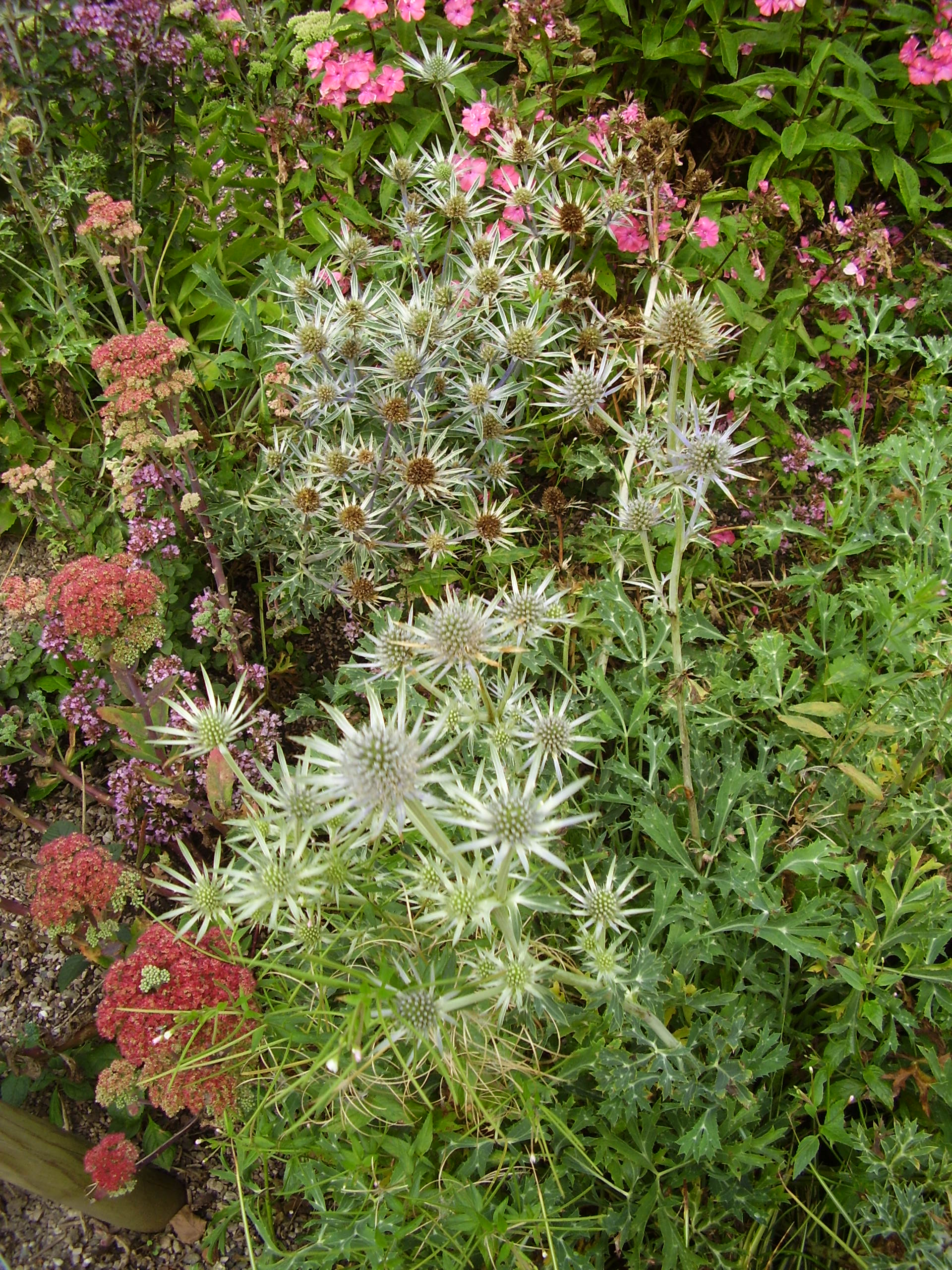 Eryngium bourgatii, sedum and phlox